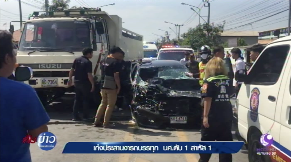 นนทบุรี 1 ก.พ.-นักศึกษาขับเก๋งสวนเลนชนประสานงารถบรรทุกสิบสองล้อเสียชีวิตทันที 1 ราย ส่วนอีกคนบาดเจ็บสาหัส