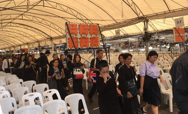 ขณะที่ ตลอดช่วงบ่าย ประชาชนจากทั่วทุกสารทิศยังคงหลั่งไหลเดินทางมารอเข้าคิว เพื่อเข้าไปกราบถวายบังคมพระบรมศพพระบาทสมเด็จพระปรมินทรมหาภูมิพลอดุลยเดช ณ พระที่นั่งดุสิตมหาปราสาท ในพระบรมมหาราชวังอย่างต่อเนื่อง และรอคิวไม่นานนัก ทำให้บางรายมาเข้าคิวเข้าไปกราบถวายบังคมพระบรมศพหลายรอบ