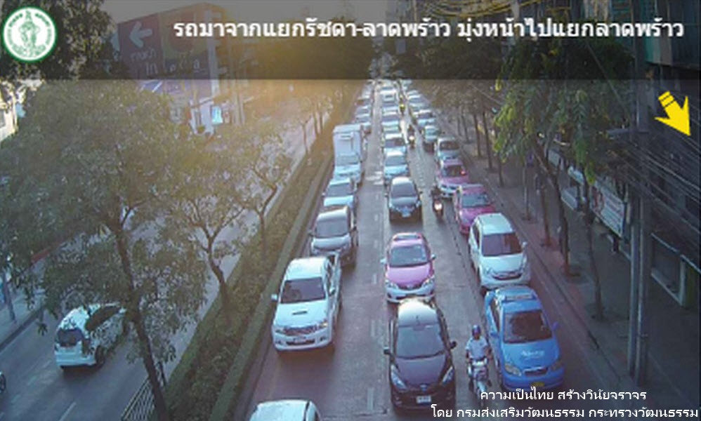 สภาพการจราจร ถนนลาดพร้าว ขาเข้า มุ่งหน้าปากทางลาดพร้าว รถมาก เต็มพื้นที่ ท้ายสะสมปากซอยลาดพร้าว 64