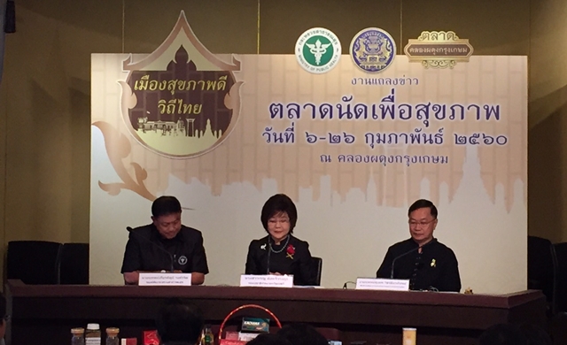 ผู้สื่อข่าวรายงานว่า นางสาวเรณู ตังคจิวางกูร รองเลขาธิการนายกรัฐมนตรี ฝ่ายการเมือง พร้อมด้วย นพ.เกียรติภูมิ วงศ์รจิต รองปลัดกระทรวงสาธารณสุข และ นพ.สุเทพ วัชรปิยานันทน์ อธิบดีกรมพัฒนาการแพทย์แผนไทยและการแพทย์ทางเลือก ร่วมแถลงข่าวจัดงาน “เมืองสุขภาพดี วิถีไทย” ตลาดคลองผดุงกรุงเกษม ที่จัดโดยกระทรวงสาธารณสุข ระหว่างวันที่ 6- 26 กุมภาพันธ์ 2560 เพื่อสร้างความเชื่อมั่นมาตรฐานบริการสุขภาพของสถานบริการในประเทศไทย ที่มีกลุ่มเป้าหมายทั้งภายในประเทศและต่างประเทศ อีกทั้งเป็นการต่อยอดภูมิปัญญาทางการแพทย์แผนไทยสู่ภาคเศรษฐกิจสร้างชาติ มุ่งการถ่ายทอดองค์ความรู้สู่การใช้ประโยชน์ให้กับประชาชน ซึ่งเป็นการตอบสนองนโยบายของรัฐบาล และส่งเสริมการเข้าถึงบริการด้านการแพทย์ การส่งเสริมและป้องกันโรค