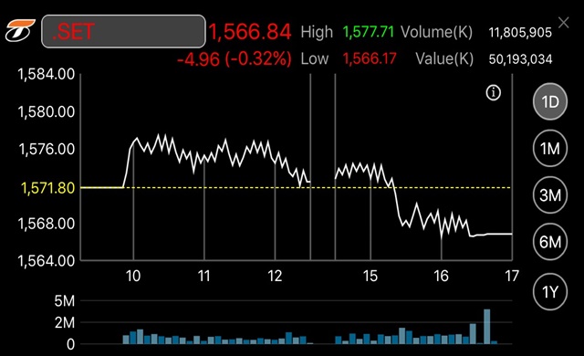 ตลท. 30 ม.ค.- ผู้สื่อข่าวรายงานว่าดัชนีตลาดหลักทรัพย์ฯ ปิดตลาดช่วงบ่ายวันนี้ (30 ม.ค.) ที่ระดับ 1,590.56 จุด ลดลง 0.24 จุด มูลค่าการซื้อขาย 41,326.71 ล้านบาท โดยดัชนีเคลื่อนไหวทั้งแดนบวก-ลบในกรอบแคบ ขยับขึ้นแตะจุดสูงสุดของวันที่ระดับ 1,594.66 จุด และต่ำสุดของวันอยู่ที่ 1,587.00 จุด