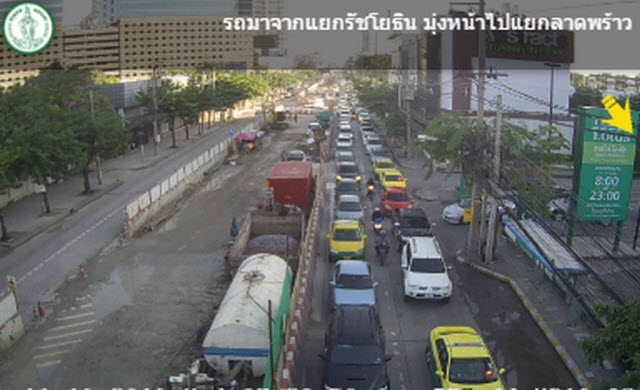 ถนนพหลโยธิน ขาเข้า จากแยกรัชโยธิน มุ่งหน้าไปแยกลาดพร้าว รถมาก เคลื่อนตัวได้ช้า ท้ายแถวชะลอตัวที่แยกเกษตร