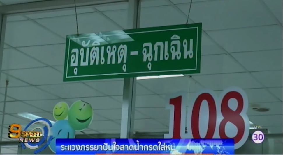 ตำรวจเข้าตรวจสอบเหตุ หนุ่มบุรีรัมย์หึงโหด ระแวงภรรยาปันใจ ใช้น้ำกรดสาดหน้าและลำตัว ขณะยืนโต้เถียงกันหน้าประตูบ้าน บาดเจ็บสาหัส ที่เกิดเหตุเจ้าหน้าที่พบนายกานนท์ จะแลบรัมย์ ยืนรอมอบตัว และพบร่องรอยน้ำกรดเกลื่อนรอบพื้นและประตูบ้าน สอบสวนนายกานนท์ สารภาพ ทะเลาะกับนางสาววันเพ็ญ ภรรยา เพราะหึงหวงกลัวปันใจให้ชายอื่น จึงบันดาลโทสะหยิบน้ำกรดที่ซื้อเก็บไว้มาสาด ขณะที่ตายายลูกวัย 5 ขวบ และ 11 ขวบ เล่าว่า ได้ยินเสียงร้องวิ่งออกมาดู และพบว่านางสาววันเพ็ญถูกน้ำกรดกัดใบหน้าและลำตัวพุพอง จึงรีบนำตัวส่งโรงพยาบาล เบื้องต้นถูกแจ้งข้อหา ทำร้ายร่างกายผู้อื่นได้รับอันตรายสาหัส และกระทำความรุนแรงในครอบครัว.-สำนักข่าวไทย