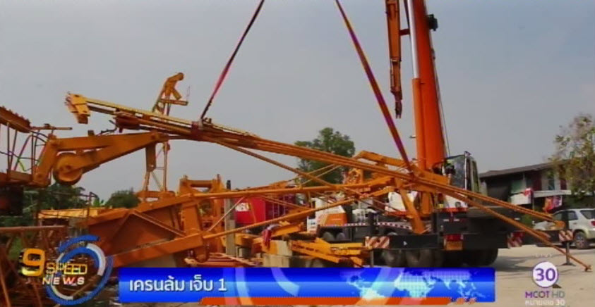 สมุทรปราการ 29 ม.ค. – เกิดเหตุเครนก่อสร้างขนาดใหญ่ ล้มทับเครน 12 ล้อ บริเวณซอยโรงเหล็ก หมู่ 10 ต.บางหญ้าแพรก อำเภอพระประแดง จังหวัดสมุทรปราการ ทำให้นายกำธร ปานนอก บาดเจ็บที่ขา จากการสอบปากคำทราบว่า ขณะนายกำธร กำลังใช้เครน 12 ล้อ ยกท่อนเหล็กยาว 8 เมตร ขึ้นรถบรรทุก มีแสงแดดส่องเข้าตาทำให้มองไม่เห็นว่า ท่อนเหล็กไปเกี่ยวกับเครนความสูงกว่า 5 เมตร จนหล่นลงมาใส่รถที่ตัวเองขับอยู่ โชคดีที่ไม่โดนทับเต็มๆ แต่ก็เฉียดไปเพียง 1 คืบเท่านั้น. -สำนักข่าวไทย