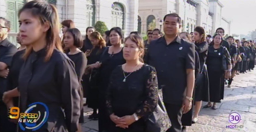 กรุงเทพฯ 29 ม.ค.- พระที่นั่งดุสิตมหาปราสาท ในพระบรมมหาราชวัง ตั้งแต่ช่วงเช้า มีประชาชนจากทั่วทุกภูมิภาคใช้เวลาในวันหยุดสุดสัปดาห์เดินทางมากราบถวายบังคมพระบรมศพ พระบาทสมเด็จพระปรมินทรมหาภูมิพลอดุลยเดช ด้วยสำนึกในพระมหากรุณาธิคุณ ส่วนใหญ่เดินทางมาเป็นครอบครัวและหมู่คณะ ออกจากบ้านตั้งแต่คืนวันเสาร์ เพื่อให้ถึงสนามหลวงทันเข้ากราบถวายบังคมพระบรมศพเป็นกลุ่มแรกๆ ซึ่งสำนักพระราชวังเปิดให้เข้ากราบถวายบังคมพระบรมศพ เวลา 04.45 น. โดยต่างกล่าวเป็นเสียงเดียวกันว่า ไม่รู้สึกเหน็ดเหนื่อย แม้ต้องอดนอน เดินทางไกลมาจากต่างจังหวัดหลายชั่วโมง. -สำนักข่าวไทย