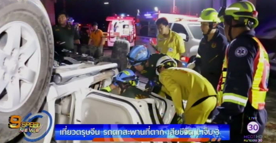 ตาก 28 ม.ค. – เกิดอุบัติเหตุรถยนต์ ทะเบียน ฌษ 2090 กรุงเทพมหานคร ตกจากสะพาน บ้านห้วยแม่บอน ถนนพหลโยธินขาขึ้น หมู่ 12 ตำบลตากออก อำเภอบ้านตาก จังหวัดตาก มีผู้ติดอยู่ในซากรถ 4 คน เจ้าหน้าที่กู้ภัยต้องใช้เครื่องมือตัดถ่างนำร่างออกมา โดยมี 3 คน บาดเจ็บสาหัส 3 คน และเสียชีวิต 1 คน คือนายสมชาย ศรีประเสริฐ คนขับ จากการสอบสวนทราบว่าผู้ตายเป็นหุ้นส่วนใหญ่ บริษัท ขนส่งสินค้าทั่วภาคเหนือ พาครอบครัวไปเที่ยวตรุษจีน ที่เชียงใหม่ แต่เกิดหลับในขับรถชนหัวสะพานอย่างแรงจนรถตกสะพาน. -สำนักข่าวไทย