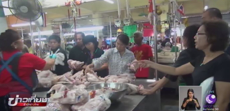พ่อค้าแม่ค้าที่ตลาดสดเทศบาล 3 จังหวัดศรีสะเกษ โดยเฉพาะเขียงชำแหละหมูและเป็ด ไก่ บอกว่า ตรุษจีนปีนี้ทางฟาร์มไม่ขึ้นราคาประเภทเนื้อสัตว์ และทางเขียงก็ไม่ได้ขึ้น ยังขายตามปกติ แต่เศรษฐกิจไม่ดี ทำให้ทุกคนต้องประหยัด