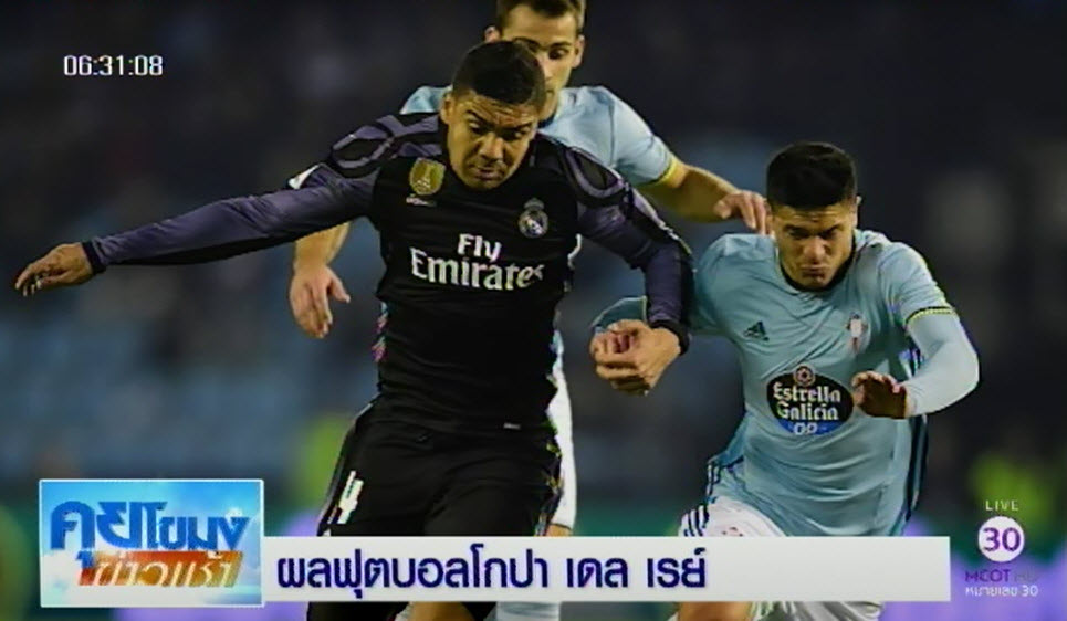 การแข่งขันฟุตบอลโกปา เดล เรย์ สเปน รอบ 8 ทีมสุดท้าย นัด 2 “ราชันชุดขาว” เรอัล มาดริด ทำได้แค่บุกไปไล่เจ๊า เซลตา บีโก 2-2 เกมนี้เจ้าถิ่นได้ประตูจาก ดานิโล ทำเข้าประตูตัวเอง ในนาที 44, ดาเนียล วาสส์ นาที 85 ทางทีมเยือนได้ประตูจาก คริสเตียโน โรนัลโด นาที 62, ลูคัส วาซเกซ นาที 90 แต่เมื่อรวมผล 2 นัด เซลตา ผ่านเข้าสู่รอบรองชนะเลิศต่อไป ด้วยประตูรวม 4-3