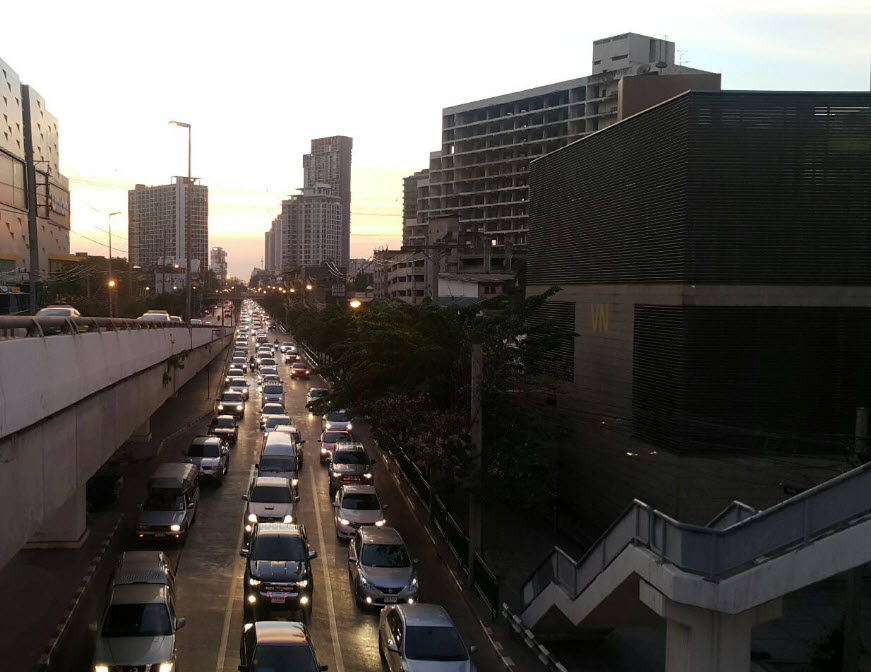 กทม. 26 ม.ค.-สวพ.FM91 รายงานสภาพการจราจรเช้าวันพฤหัสบดี ถนนลาดพร้าว มุ่งหน้าปากทางลาดพร้าว รถมาก ถนนพหลโยธิน ผ่านหน้าตลาดยิ่งเจริญ จราจรติดขัด