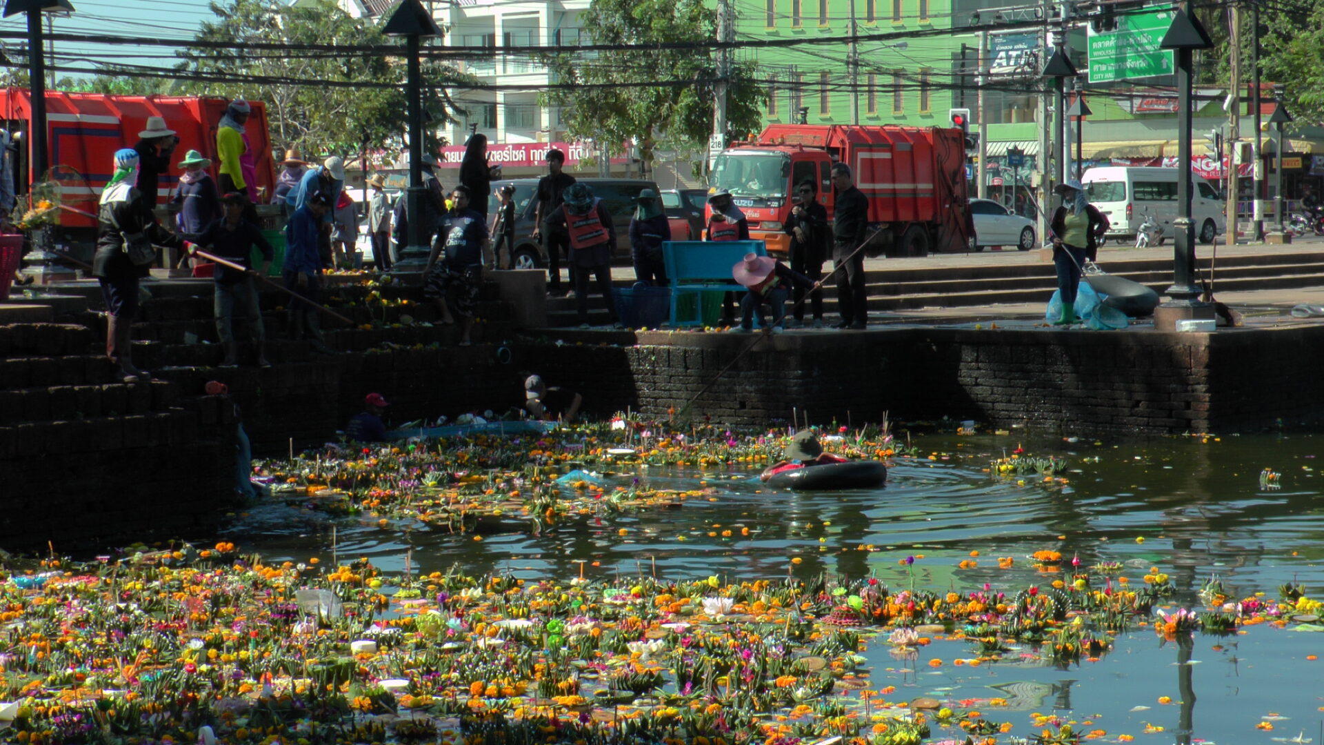 นายกมล เรืองสุขศรีวงศ์ นายกเทศมนตรีเมืองบุรีรัมย์ พร้อมนางสิรินันท์ มณีราชกิจ ผู้อำนวยการกองสาธารณสุขและสิ่งแวดล้อมเทศบาลเมือง ระดมเจ้าหน้าที่กองสาธารณสุขและสิ่งแวดล้อม อสม. และกรรมการชุมชนทั้ง 18 ชุมชน กว่า 200 คน ช่วยกันเก็บเศษซากวัสดุกระทง และขยะมูลฝอยที่ลอยเกลื่อนในคลองละลมโบราณทั้ง 6 ลูก ซึ่งเป็นสถานที่จัดงานลอยกระทง เมื่อคืนที่ผ่านมา เพื่อนำไปคัดแยกและทำลายฝังกลบที่บ่อกำจัดขยะของเทศบาล และทำความสะอาดสถานที่ให้กลับคืนดังเดิม คาดว่าภายในคลองละลมโบราณทั้ง 6 ลูก มีซากกระทงไม่น้อยกว่า 20,000 ใบ