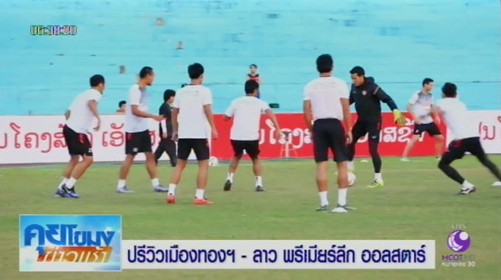 ความเคลื่อนไหวของทีม “กิเลนผยอง” เอสซีจี เมืองทอง ยูไนเต็ด แชมป์ไทยลีกฤดูกาลล่าสุด กับการเดินทางไปอุ่นเครื่องกับทีมลาว พรีเมียร์ลีก ออลสตาร์ ที่สนามเจ้าอนุวงศ์ ที่กรุงเวียงจันทน์ ประเทศลาว ล่าสุด “โค้ชแบน” ธชตวัน ศรีปาน เฮดโค้ชของทีม นำนักเตะลงฝึกซ้อมช่วงวานนี้ โดยไม่มี ทริสตอง สมชาย โด, ซิสโก และ ลีโฮ สามดาวเตะที่ไม่ได้ร่วมซ้อมกับทีม ขณะที่ “เจ้าตอง” กวินทร์ ธรรมสัจจานันท์ ผู้รักษาประตูมือหนึ่งทีมชาติไทย เดินทางมาสมทบภายหลัง และพร้อมลงสนาม แต่ขึ้นอยู่กับว่า “โค้ชแบน” จะส่งลงเล่นหรือไม่ โดย “โค้ชแบน” ยอมรับว่า สภาพสนามกีฬาเจ้าอนุวงศ์นั้นไม่ค่อยดี ทำให้เมืองทองฯ คงไม่สามารถเล่นบอลบนพื้นได้เท่าใดนัก แต่ก็คงจะนำแท็กติกที่ฝึกซ้อมในช่วงปรีซีซั่น มาปรับใช้ในเกมนี้ให้มากที่สุด