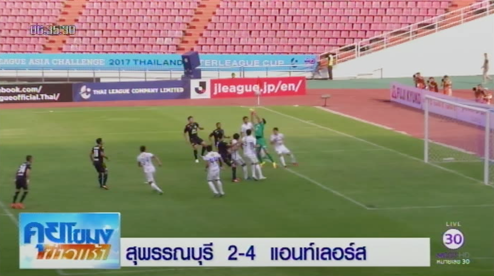 คู่ที่ 2 “แข้งเทพ” แบงค็อก ยูไนเต็ด รองแชมป์ไทยลีก 2016 พบ โยโกฮาม่า เอฟ มารินอส อันดับ 9 จากเจ ลีก นาทีที่ 20 เคย์แมน เกรย์บิล โทกาชิ หมุนตัวยิงด้วยซ้ายส่งบอลเข้าไปตุงตาข่ายให้ โยโกฮาม่า เอฟ มารินอส ขึ้นนำไปก่อนในครึ่งแรก 1-0 ครึ่งหลังนาทีที่ 51 สุมัญญา ปุริสาย ซัดฟรีคิกเข้าไปตุงตาข่ายให้ “แข้งเทพ” ตามตีเสมอ โยโกฮ่ามา 1-1 นาทีที่ 62 โยโกฮาม่า เอฟ มารินอส ขึ้นนำอีกครั้ง 2-1 จากลูกยิงของ เคนไซ นากาชิมา ที่ยิงหนีมือ วรุฒ เมฆมุสิก เข้าไปตุงตาตาข่าย นาทีที่ 83 โยโกฮาม่า สวนกลับเร็ว เทรุฮิโตะ นาคาซาวา หลุดไปยิงข้ามตัว วรุฒ เมฆมุสิก เข้าไปเป็นประตูขึ้นนำ 3-1 นาทีที่ 86 “ลีซอ” ธีรเทพ วิโนทัย หลุดไปยิงให้ทีมไล่มา 2-3 จบเกม แบงค็อก ยูไนเต็ด แพ้ไปอย่างสนุก 2-3 โดยนัดต่อไป วันที่ 26 มกราคม คู่แรก 16.00 น. แบงค็อก ยูไนเต็ด พบ คาชิม่า แอนท์เลอร์ส คู่ที่ 2 เวลา 19.00 น. สุพรรณบุรี เอฟซี พบ โยโกฮาม่า เอฟ มารินอส. -สำนักข่าวไทย