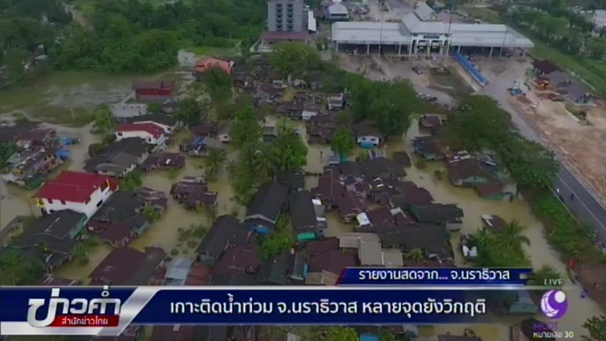 ที่ จ.นราธิวาส วันนี้ยังคงมีฝนตกกระจายบางพื้นที่ แต่ตกไม่หนักมาก ท้องฟ้ามืดครึ้มปกคลุมพื้นที่ทั้ง 13 อำเภอ ของ จ.นราธิวาส ส่งผลให้ปริมาณน้ำในแม่น้ำสายหลัก 3 สาย คือ แม่น้ำโก-ลก แม่น้ำบางนรา และแม่น้ำสายบุรี ที่ล้นตลิ่งท่วมบ้านเรือนในที่ลุ่ม ลดลงอย่างต่อเนื่อง โดยยังมีจุดที่ยังวิกฤติคือ อ.สุไหงปาดี เจาะไอร้อง และสุไหงโก-ลก