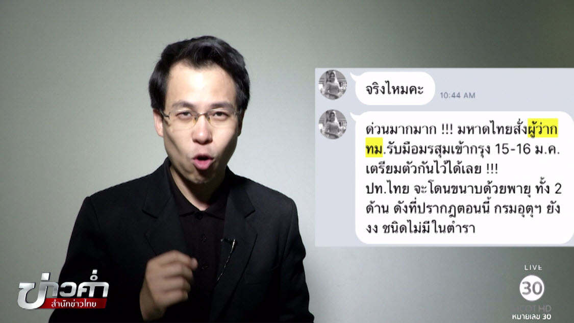 วิธีการ • Add LINE ของสำนักข่าวไทย เข้าไปที่เพิ่มเพื่อน แล้วพิมพ์ @TNAMCOT ถ้าได้รับแชร์อะไรมา อย่าเพิ่งแชร์ต่อ ส่งมาให้เราตรวจใน “ชัวร์ก่อนแชร์” พบกับสกู๊ปข่าวนี้ได้ในข่าวค่ำสำนักข่าวไทยทุกวัน