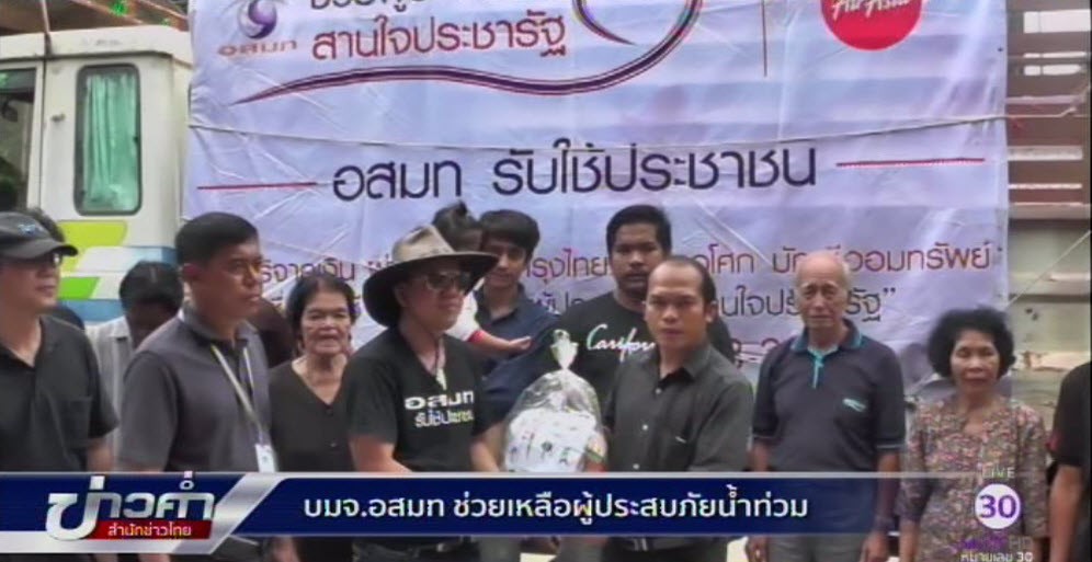 ขณะที่ธารน้ำใจจากพี่น้องชาวไทยยังหลั่งไหลช่วยผู้ประสบภัยน้ำท่วมมายัง บมจ.อสมท ในโครงการ “อสมท ช่วยผู้ประสบภัย…สานใจประชารัฐ” ทั้งอาหาร สิ่งของ และเงินบริจาคผ่าน 3 เครือข่ายโทรศัพท์มือถือ และบัญชีออมทรัพย์ ชื่อบัญชี “อสมท ช่วยผู้ประสบภัย สานใจประชารัฐ” ธนาคารกรุงไทย สาขาอโศก เลขที่ 015-0-21738-2 ทำให้ขณะนี้ยอดเงินบริจาค ณ เวลา 18.00 น.อยู่ที่ 24,469,533.66 บาท