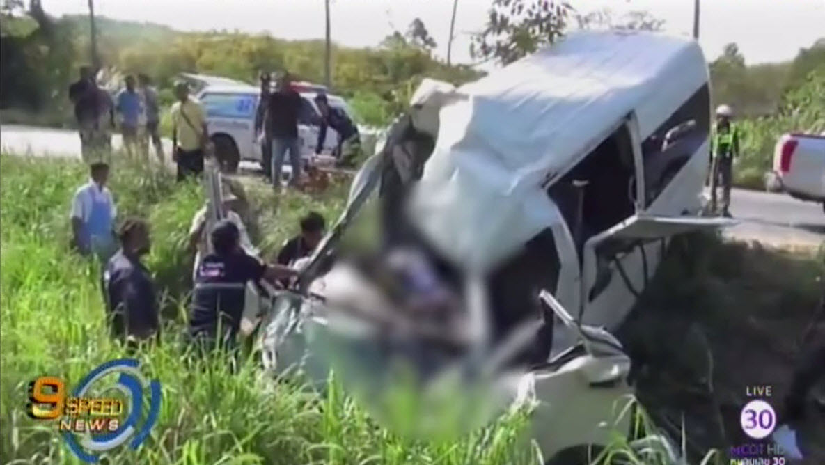 ชลบุรี 23 ม.ค.-เกิดอุบัติเหตุรถตู้โดยสารสายชลบุรี-จันทบุรี ยางระเบิดเสียหลักพุ่งตกร่องกลางถนน ก่อนชนตอไม้อย่างรุนแรง คนขับชีวิตทันที ส่วนผู้โดยสารชาวกัมพูชาที่จ้างเหมามา 13 คน บาดเจ็บเล็กน้อย