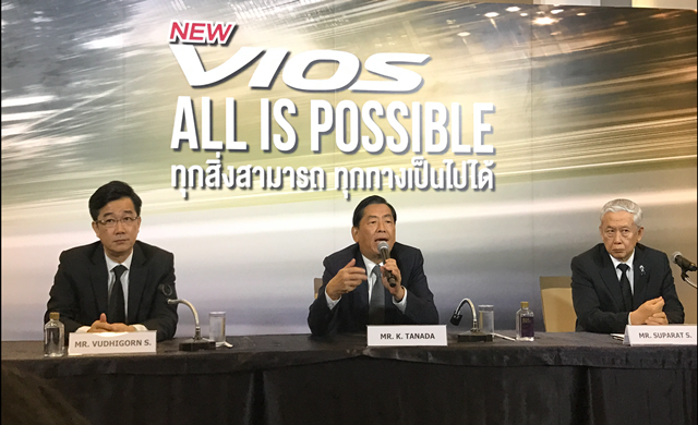 ในวันนี้ (23 ม.ค.) นายทานาดะ พร้อมด้วยนายวุฒิกร สุริยะฉันทนานนท์ รองกรรมการผู้จัดการใหญ่ และ นายศุภรัตน์ ศิริสุวรรณางกูร ที่ปรึกษาบริหารอาวุโส บริษัท โตโยต้า มอเตอร์ ประเทศไทย จำกัด ยังร่วมแถลงข่าวแนะนำรถยนต์นั่งขนาดเล็กยอดนิยม “New VIOS… All IS POSSIBLE” โตโยต้าผลิตรถยนต์นั่งขนาดเล็กและประสบความสำเร็จสามารถครองตำแหน่งยอดขายสูงสุดเป็นอันดับ 1 ด้วยยอดขายสะสมตั้งแต่เปิดตัวจนถึงปัจจุบันมากกว่า 847,910 คัน (ยอดขายถึงเดือนธันวาคม 2559)