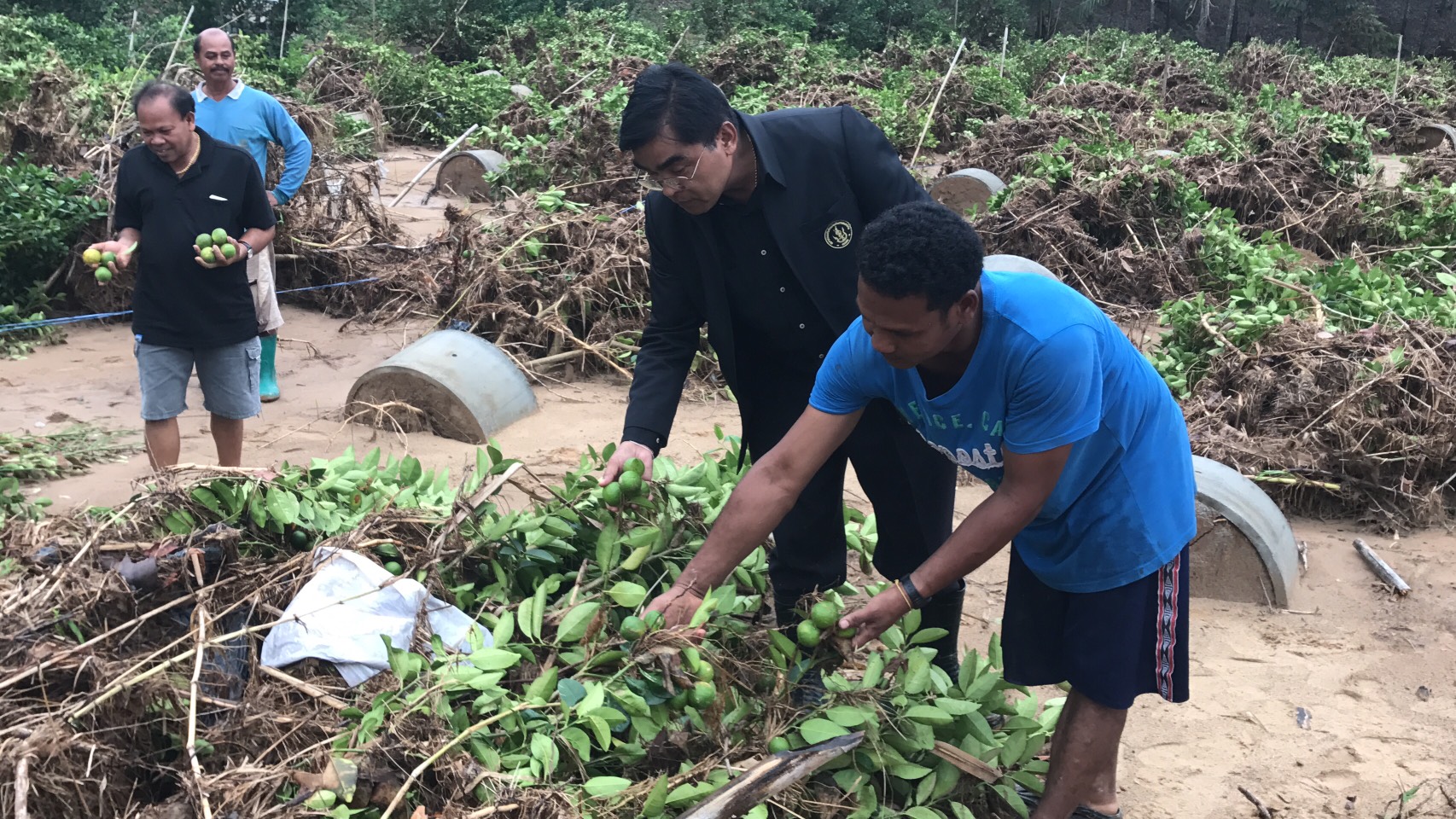 สุราษฎร์ธานี 23 ม.ค.- ฝนตกกระหน่ำสุราษฎร์ฯ รอบนี้ส่งผลกระทบหนัก น้ำป่าหลากสวนมะนาวกาญจนดิษฐ์เสียหายหลายแสนบาท วอนรัฐเร่งช่วยเหลือ