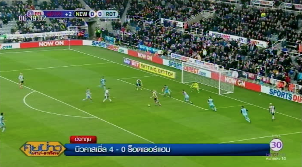 ฟุตบอลอีเอฟแอล แชมเปียนชิพ ที่ช่อง mcot family หมายเลข 14 ถ่ายทอดสด เมื่อคืนนี้ คู่สำคัญ นิวคาสเซิล ยูไนเต็ด ทีมรองจ่าฝูง เปิดบ้านพบ ร็อตเธอร์แฮม ยูไนเต็ด ดาริล เมอร์ฟี ยิงให้เจ้าถิ่นนำก่อน 1-0 นาทีที่ 45 จากนั้นเป็น แมตต์ ริชชี ยิงประตูที่ 2 นาทีที่ 49 อยองเซ่ เปเรซ ยิงประตูที่ 3 นาทีที่ 59 ก่อนที่ ริชชี จะยิงประตูปิดท้ายนาทีที่ 77 ให้ นิวคาสเซิล เปิดบ้าน เอาชนะ ร็อตเธอร์แฮม ยูไนเต็ด 4-0 เก็บ 3 คะแนนกลับไปเป็นจ่าฝูงอีกครั้ง เตะ 27 นัด มี 58 คะแนน ส่วนร็อตเธอร์แฮมอยู่บ๊วย มี 16 คะแนน