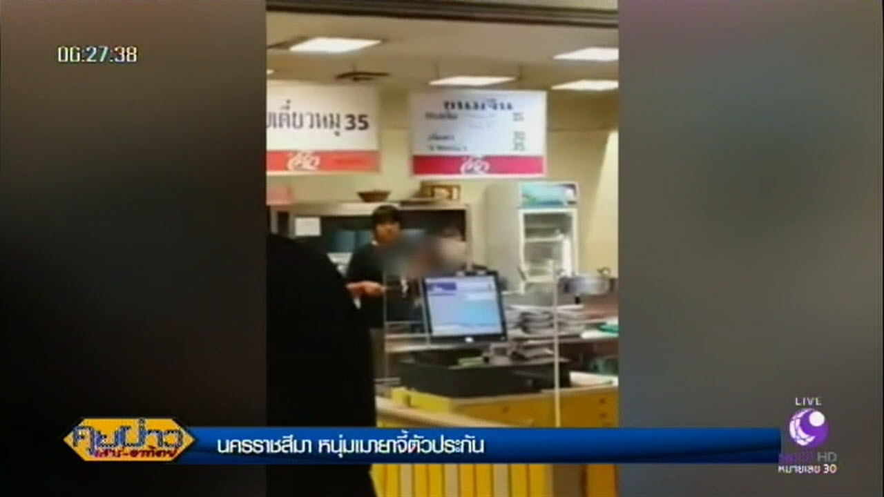 นครราชสีมา 22 ม.ค.-โลกออนไลน์แพร่คลิประทึกหนุ่มเมายาคลุ้มคลั่งใช้มีดจี้แคชเชียร์หญิงเป็นตัวประกันกลางสถานีขนส่งผู้โดยสารแห่งที่ 2 นครราชสีมา