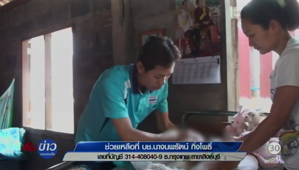 วันนี้ผู้สื่อข่าวได้เดินทางไปยังบ้านเลขที่ 130 หมู่ที่ 4 ต.บ้านชี อ.บ้านหมี่ จ.ลพบุรี ซึ่งทราบว่ามี ด.ญ.พัทรวี กิ่งโพธิ์ น้องบิว อายุ 6 ขวบ ป่วยเป็นโรคไวรัสขึ้นสมองอย่างรุนแรง แพ้ภูมิตัวเอง อีกทั้งปอดซ้ายแฟบ ตามองไม่เห็น ต้องเจาะคอเพื่อหายใจ และให้อาหารทางสายยาง ไม่สามารถช่วยเหลือตัวเองได้ นอนติดเตียง 2 ปีกว่าแล้ว พ่อทำงานในตลาดสดรายได้ วันละ 300 บาท ส่วนแม่ ต้องลาออกจากงานมาดูแลน้องบิว ซึ่งระยะเวลา 1 เดือน ต้องพาน้องบิว ไปหาหมอที่ รพ.เด็ก กรุงเทพฯ ต้องเสียค่าใช้จ่าย ค่ารถ ค่ายานอกบัญชี วอนผู้ใจบุญทุกท่านช่วยเหลือ