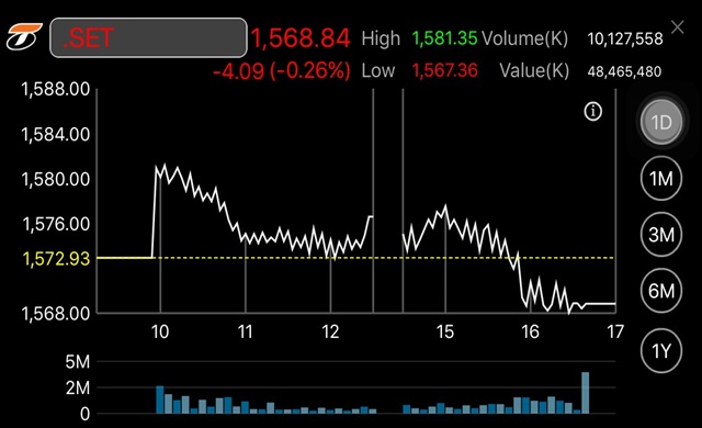 ตลท. 20 ม.ค. – ผู้สื่อข่าวรายงานดัชนีตลาดหลักทรัพย์แห่งประเทศไทย (ตลท.) ปิดการซื้อขายวันนี้ (20 ม.ค.) ที่ระดับ 1,562.99 จุด เพิ่มขึ้น 8.11 จุด หรือ ร้อยละ 0.52 มูลค่าการซื้อขาย 56,408.80 ล้านบาท โดยดัชนีเคลื่อนไหวแดนบวกเป็นหลัก สวนทางกับตลาดหุ้นต่างประเทศที่ส่วนใหญ่ปรับลดลง ตลาดหุ้นจับตาการสาบานตนเข้ารับตำแหน่งประธานาธิบดีสหรัฐอย่างเป็นทางการของนายโดนัลด์ ทรัมป์ คืนนี้ โดยดัชนีสูงสุดของวันที่ระดับ 1,566.34 จุด และ ต่ำสุดของวันที่ระดับ 1,552.16 จุด
