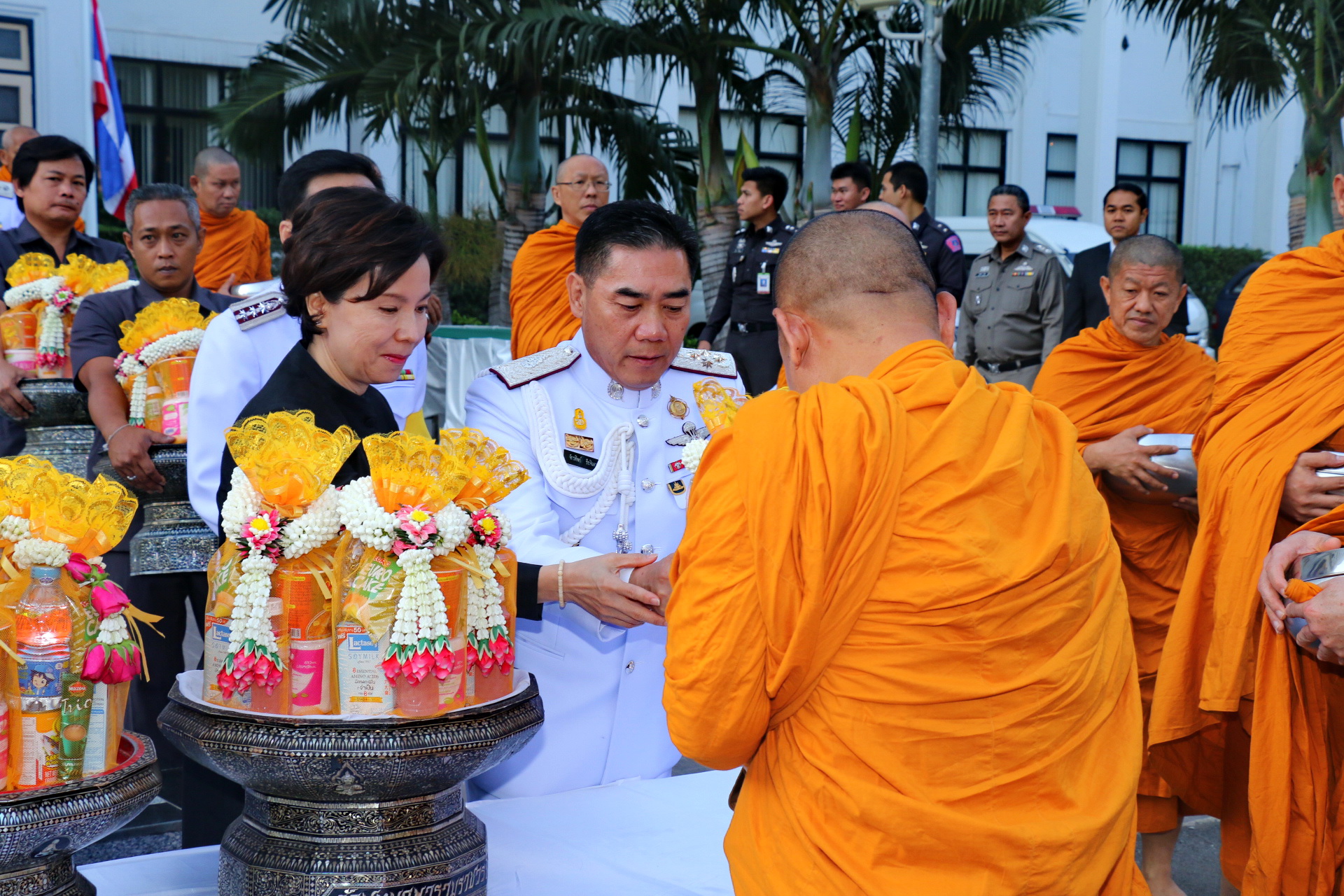 พลตำรวจเอก จักรทิพย์ ชัยจินดา ผู้บัญชาการตำรวจแห่งชาติ พร้อมด้วยรองผู้บัญชาการตำรวจแห่งชาติและข้าราชการตำรวจ ร่วมกันตักบาตรอาหารแห้งแด่พระภิกษุสงฆ์จำนวน 109 รูป จากวัดเทพศิรินทราวาชและวัดหงส์รัตนาราม เนื่องในโอกาสพระราชพิธีทรงบำเพ็ญพระราชกุศลสตมวาร 100 วัน เพื่อถวายเป็นพระราชกุศลแด่พระบาทสมเด็จพระปรมินทรมหาภูมิพลอดุลยเดช ที่บริเวณลานด้านพระบรมราชานุสาวรีย์รัชกาลที่ 4