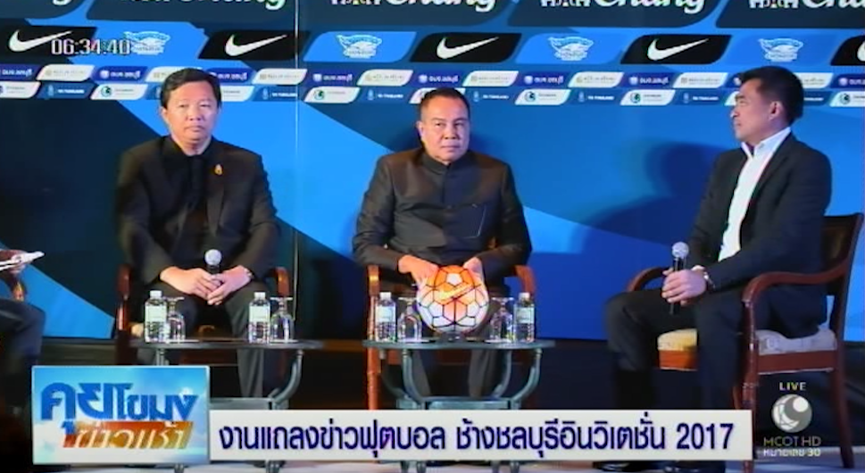 พล.ต.อ.สมยศ พุ่มพันธุ์ม่วง นายกสมาคมกีฬาฟุตบอลฯ พร้อมด้วย นายวิทยา คุณปลื้ม ประธานสโมสรชลบุรี เอฟซี ร่วมงานแถลงข่าว จัดการแข่งขัน ฟุตบอล 4 เส้า “ช้าง ชลบุรี อินวิเตชั่น 2017” เตรียมทีมสำหรับศึกฟุตบอลไทยลีก 2017 ที่จะเริ่มขึ้นในช่วงเดือนหน้า โดยจะเริ่มแข่งขัน บ่ายวันนี้เป็นวันแรก ซึ่งรอบรองชนะเลิศ คู่แรก เวลา 16.30 น. ชัยนาท ฮอร์นบิล จาก ไทยลีก 2 พบ ซูวอน เอฟซี ทีมจากเกาหลีใต้ และเวลา 19.00 น. ชลบุรี เอฟซี จะทำศึกดาร์บี้แมตช์ภาคตะวันออก พบ ราชนาวี ก่อนจะลงเตะนัดชิงที่ 3 และนัดชิงชนะเลิศ ในวันที่ 22 ม.ค.นี้.-สำนักข่าวไทย