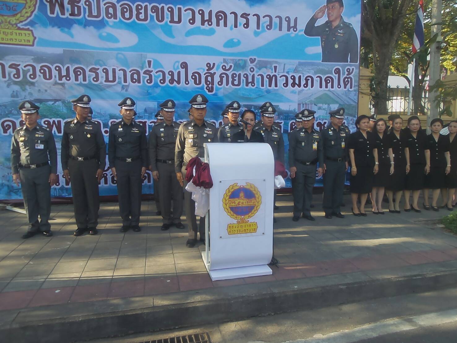 พลตำรวจโทศานิตย์ มหถาวร ผู้บัญชาการตำรวจนครบาล ทำพิธีปล่อยขบวนคาราวาน “ตำรวจนครบาลร่วมใจ สู้ภัยน้ำท่วมภาคใต้” เพื่อนำสิ่งของ เครื่องอุปโภคบริโภค ไปช่วยเหลือผู้ประสบภัยน้ำท่วมภาคใต้ ณ บริเวณถนนด้านหน้ากองบัญชาการตำรวจนครบาล มีรถบรรทุกสิ่งของ จำนวน 12 คัน จากกองบังคับการ ตำรวจนครบาล 1-9 กองบังคับการสายตรวจและปฏิบัติการพิเศษ หรือ 191 และกองบังคับการสืบสวนสอบสวน มูลค่าสิ่งของบริจาคกว่าหนึ่งล้านสองแสนบาท เพื่อมอบให้ผู้ว่าราชการจังหวัดสุราษฎร์ธานีก่อนนำไปแจกจ่ายให้ประชาชนที่เดือดร้อน.-สำนักข่าวไทย