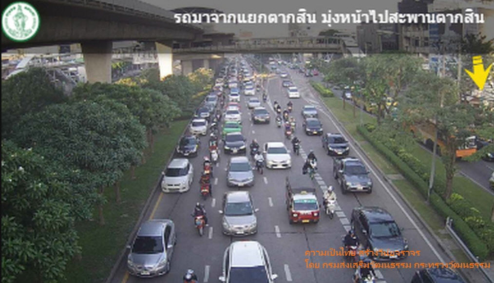 กทม. 19 ม.ค.- fm91trafficpro และ TRS995radio รายงานการจราจรเช้าวันพฤหัสบดี ถนนกรุงธนบุรี มุ่งหน้าสะพานสมเด็จพระเจ้าตากสิน รถแน่นท้ายสะสมสะพานข้ามแยกตากสิน