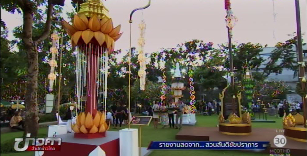 นอกจากนี้ บริเวณโดยรอบยังจัดกิจกรรมสาธิตวิถีไทย โดยเฉพาะช่อม่วง ขนมจีบไทย ฝอยทอง ซึ่งปรากฏอยู่ในกาพย์เห่ชมเครื่องคาวหวาน พระราชนิพนธ์ในรัชกาลที่ 2 รวมถึงการประดิษฐ์กระทงจากวัสดุธรรมชาติ โดยมีประชาชนให้ความสนใจทั้งชาวไทยและชาวต่างชาติ สำหรับที่สวนสันติชัยปราการแห่งนี้ได้ทำลำรางเพื่ออำนวยความสะดวกให้ประชาชนลอยกระทง เพื่อป้องกันการพลัดตกน้ำ. – สำนักข่าวไทย
