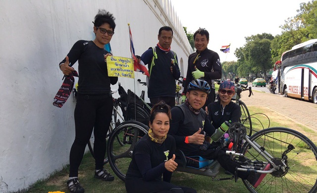 สนามหลวง 18 ม.ค.- นักกีฬาวีลแชร์เรซซิ่งทีมชาติไทย ปั่นวีลแชร์และจักรยานในโครงการ “ปั่น ปลูกป่า รักษาน้ำ ถวายในหลวงรัชกาลที่ 9″ ตั้งแต่วันที่ 20 กันยายน 2559 เป็นเวลา 120 วัน ในเส้นทางกว่า 10,000 กิโลเมตร ถึงสนามหลวงแล้ววันนี้ เผยปลื้มใจได้ปั่นเพื่อพ่อ