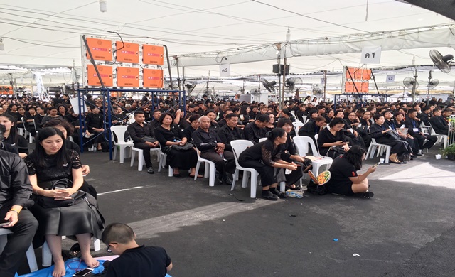 บรรยากาศที่บริเวณท้องสนามหลวง มีพสกนิกรจำนวนมากจากทั่วประเทศเดินทางมาเข้าคิวกราบถวายบังคมพระบรมศพพระบาทสมเด็จพระปรมินทรมหาภูมิพลอดุลยเดช ณ พระที่นั่งดุสิตมหาปราสาท ในพระบรมมหาราชวังอย่างเนืองแน่น ด้วยสำนึกในพระมหากรุณาธิคุณอย่างหาที่สุดมิได้