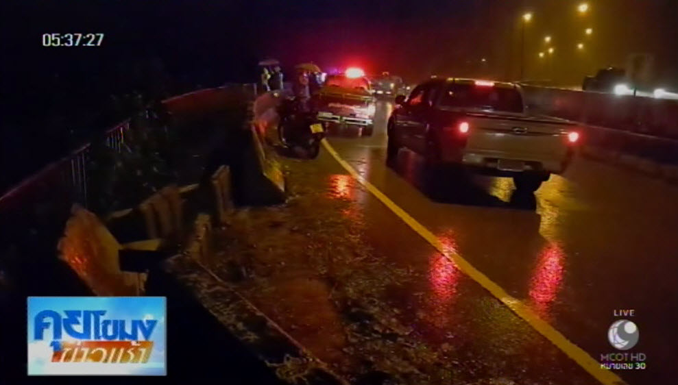 ชุมพร 18 ม.ค. – ชายวัย 55 ปี ซิ่งเก๋งฝ่าฝนที่ จ.ชุมพร เฉี่ยวชนกับรถเก๋งอีกคัน ก่อนเสียหลักชนแบริเออร์ พุ่งข้ามเหล็กกั้นตกลงไปในแม่น้ำหลังสวน นักประดาน้ำเร่งค้นหา แต่ยังไม่พบ และต้องยุติการค้นหาชั่วคราว เนื่องจากฝนตกหนัก น้ำไหลเชี่ยว