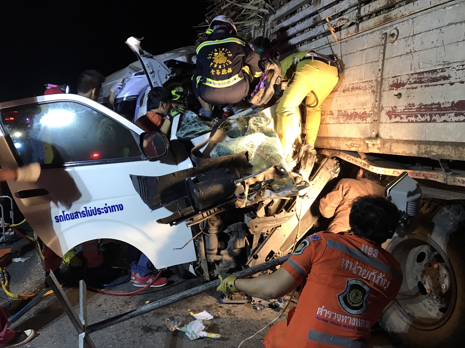 เมื่อเวลา 04.30 น. วันนี้ (17 ม.ค.) ร.ต.อ.ไพบูลย์ ชัยสิทธิกุล ร้อยเวร สภ.กุมภวาปี จ.อุดรธานี พร้อมหน่วยกู้ชีพกู้ภัยและตำรวจทางหลวง เร่งช่วยเหลือรถตู้โดยสารไม่ประจำทาง สีขาว ทะเบียน 30-0153 สกลนคร ชนท้ายรถสิบล้อบรรทุกอ้อย ทะเบียน 80-5841 อุดรธานี บนถนนมิตรภาพ กม.406-407 ฝั่งขาเข้าอุดรธานี หน้าวัดป่าบ้านดงน้อย ต.ปะโค อ.กุมภวาปี มีผู้ประสบเหตุติดอยู่ภายในรถตู้ 7 คน เจ้าหน้าที่ใช้อุปกรณ์ตัดถ่างช่วยเหลือออกมาได้ นำส่งโรงพยาบาล 6 ราย และเสียชีวิต 1 ราย