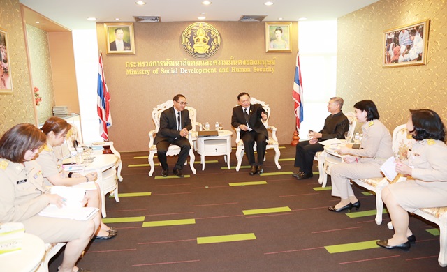 พล.ต.อ.อดุลย์ แสงสิงแก้ว รัฐมนตรีว่าการกระทรวงการพัฒนาสังคมและความมั่นคงของมนุษย์ (รมว.พม.) ให้นายธานี แสงรัตน์ กงสุลใหญ่ ณ นครลอสแอนเจลิส สหรัฐอเมริกา เข้าเยี่ยมคารวะพร้อมหารือความร่วมมือในการช่วยเหลือหญิงไทยและคนไทยในนครลอสแอนเจลิส ที่ประสบปัญหาต่างๆ เช่น ปัญหาครอบครัว การเข้าเมืองผิดกฎหมาย การจ้างงาน ด้านภาษาและการสื่อสาร เป็นต้น ส่งผลให้หญิงไทยและคนไทยไม่ได้รับการช่วยเหลือได้อย่างถูกต้องและเหมาะสม ณ ห้องรับรองชั้น 9 อาคารกรมพัฒนาสังคมและสวัสดิการ กระทรวงการพัฒนาสังคมฯ