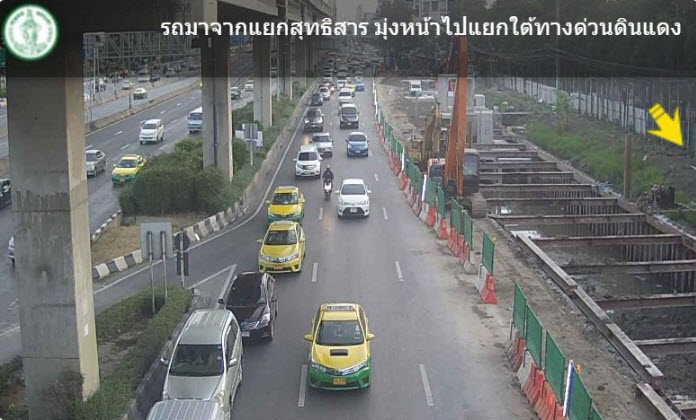 สภาพการจราจร ถนนวิภาวดีรังสิต จากแยกสุทธิสาร มุ่งหน้าไปแยกใต้ทางด่วนดินแดง รถมาก