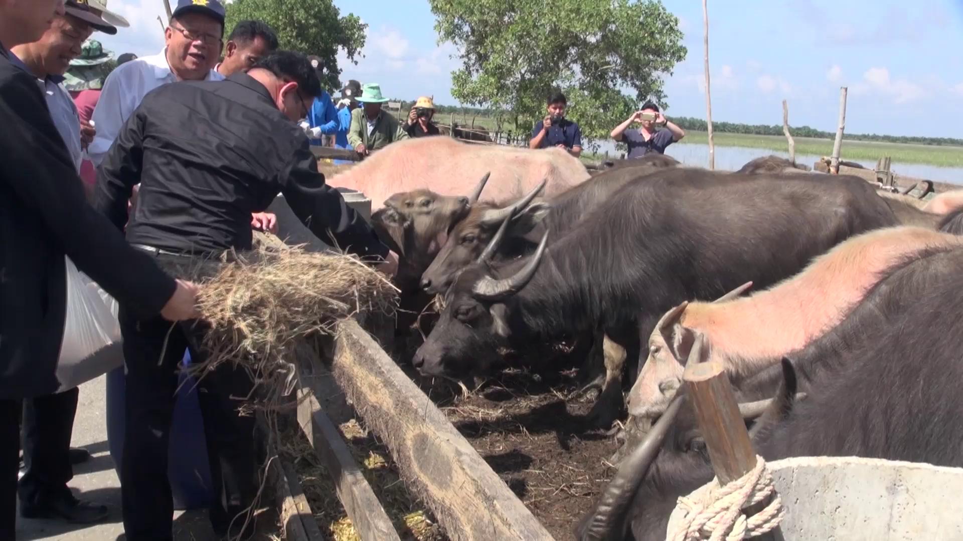 โดยปศุสัตว์ได้นำอาหารเสริมมาช่วยเหลือสัตว์เลี้ยงของเกษตรกร มีทั้งหญ้าเนเปียหมัก 100 ถัง ๆ ละ 100 กิโลกรัม หญ้าสดอัดก้อน 80 ท่อน ๆ ละ 40 กก. อาหารเม็ดสำเร็จรูป 6,000 กก. และหญ้าแห้ง 500 ฟ่อน