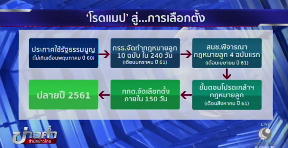 หากประเมินเต็มกรอบเวลาในการดำเนินการของแต่ละขั้นตอนคาดว่าจะสามารถจัดการเลือกตั้งได้ประมาณในปี 2561 . – สำนักข่าวไทย