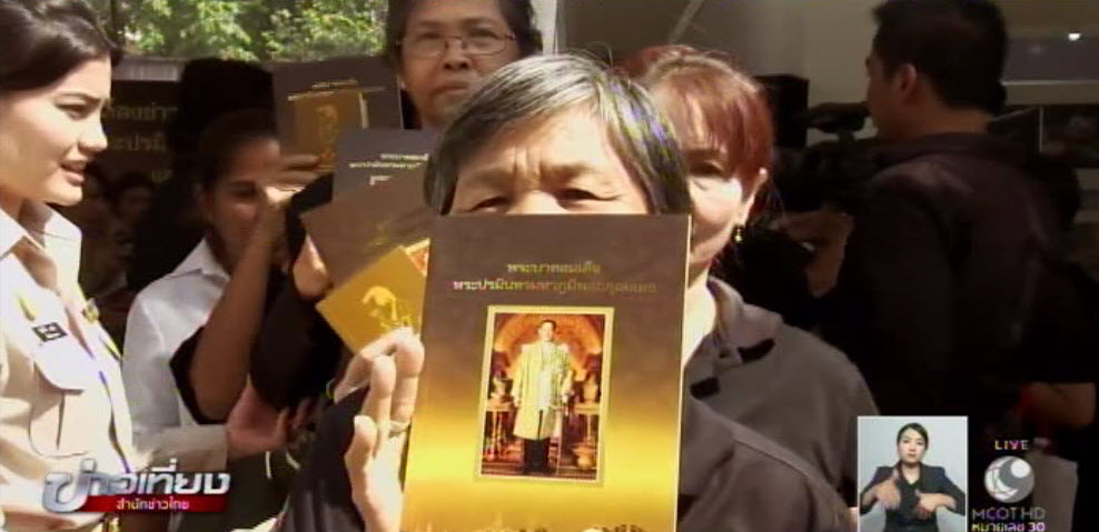 กรุงเทพฯ 14 พ.ย. – วันนี้เป็นวันแรกที่ ก.วัฒนธรรม แจกหนังสือรวบรวมพระบรมราโชวาทและพระบรมฉายาลักษณ์หาชมยากของพระบาทสมเด็จพระปรมินทรมหาภูมิพลอดุลยเดช ให้แก่ประชาชน