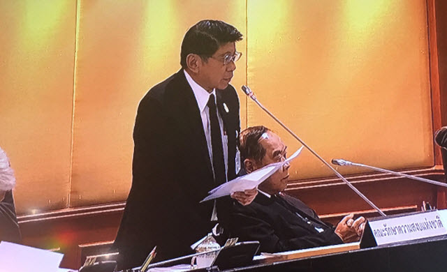 นายวิษณุ ชี้แจงว่า เป็นการแก้ไขใน 2 ประเด็น ที่เกี่ยวข้องกับการแต่งตั้งผู้สำเร็จราชการแทนพระองค์ และเรื่องเกี่ยวกับการให้อำนาจนายกรัฐมนตรีขอนำร่างรัฐธรรมนูญที่ทูลเกล้าฯ ไปแล้ว นำกลับมาแก้ไขใหม่ เนื่องจากสำนักราชเลขาธิการได้แจ้งมาว่า มีข้อสังเกตบางประการที่จะรับไปดำเนินการ และรัฐบาลได้พิจารณาร่วมกับ คสช.แล้ว เห็นควรว่าจะต้องดำเนินการในขณะนี้ เพราะหากใช้รัฐธรรมนูญแล้ว แม้โดยกลไกทางกฎหมายจะทำได้ แต่การจะแก้ไขบางข้อความในบางหมวดจำเป็นจะต้องนำไปทำประชามติ ซึ่งจะใช้เวลายืดยาวและกระทบกระเทือนเรื่องอื่น ๆ และปัญหามีอยู่ว่า เมื่อทูลเกล้าฯ แล้ว ตกอยู่ในพระราชอำนาจแล้ว รัฐบาลจะนำกลับมาแก้โดยพลการไม่ได้ จึงต้องอาศัยข้อกฎหมายเพื่อให้เกิดความกระจ่างแจ้ง