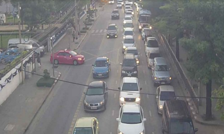ถนนสามเสน จากแยกวชิระ มุ่งหน้าไปแยกซังฮี้ รถหนาแน่น เคลื่อนตัวได้ช้า