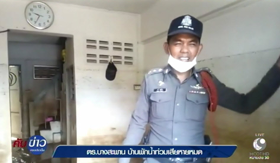 สถานการณ์น้ำท่วมที่อ.บางสะพาน จ.ประจวบคีรีขันธ์ นอกจากบ้านเรือนประชาชนที่ประสบน้ำท่วมแล้ว บ้านพักตำรวจโรงพักย่อยนพคุณ ต.ร่อนนทอง ก็โดนน้ำท่วมเสียหายอย่างหนักเช่นกัน ภรรยาเจ้าหน้าที่ตำรวจท่านหนึ่ง ได้เล่าให้ผู้สื่อข่าวฟังว่า ขณะที่อยู่ภายในบ้านกับลูกสาว น้ำได้ไหลเข้ามาในบ้าน ตนเองได้พยายามยกของขึ้นที่สูงแล้วแต่ไม่พ้น จึงได้โทรศัพท์ไปหาสามีที่กำลังปฏิบัติหน้าที่ให้การช่วยเหลือชาวบ้านอยู่ให้กลับมาช่วย ย้ายสิ่งของ ขณะที่สามีเดินทางกลับมาก็ไม่สามารถที่จะเข้ามาในบ้านพักได้ต้องจอดรถยนต์ทิ้งไว้และเดินมาไกล เมื่อมาถึงบ้านก็น้ำก็ได้ท่วมหมดแล้ว ทรัพย์สินภายในบ้าน เสียหายทั้งหมด นอกจากนี้รถยนต์ที่สามีจอดทิ้งไว้เพื่อกลับมาบ้าน น้ำได้ท่วมมิดหลังคาเกิดความเสียหายทั้งคัน ซึ่งขนาดนี้ภายในบ้านหรือเพียงโต๊ะ ตู้ เท่านั้น นอกนั้นหายไปกับน้ำทั้งหมด โชคดีที่ยังมีชีวิตรอดมาได้