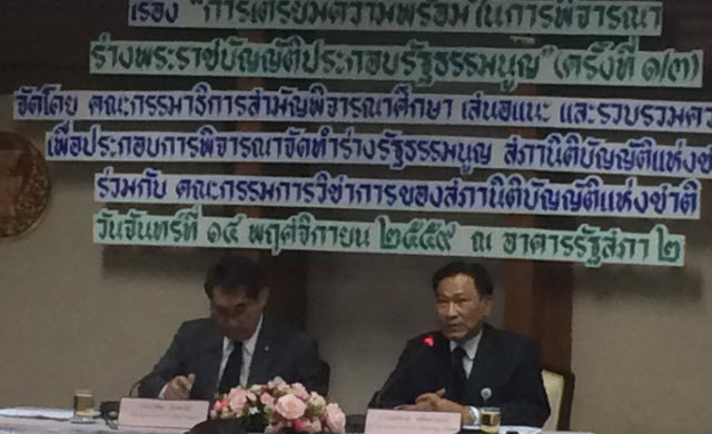 คณะกรรมาธิการสามัญพิจารณาศึกษา เสนอแนะ และรวบรวมความเห็นเพื่อประกอบการพิจารณาจัดทำร่างรัฐธรรมนูญ สภานิติบัญญัติแห่งชาติ (สนช.) จัดสัมมนาเตรียมความพร้อมในการพิจารณาร่างพระราชบัญญัติประกอบรัฐธรรมนูญ (พ.ร.ป.) เพื่อให้การพิจารณาเป็นไปตามเจตนารมย์ของร่างรัฐธรรมนูญโดยนายพรเพชร วิชิตชลชัย ประธาน สนช.ว่า ขณะนี้ พล.อ.ประยุทธ์ จันทร์โอชา นายกรัฐมนตรี ได้นำร่างรัฐธรรมนูญที่ผ่านการทำประชามติ และแก้ไขโดยคณะกรรมการร่างรัฐธรรมนูญ (กรธ.) ตามคำวินิจฉัยของศาลรัฐธรรมนูญ ขึ้นทูลเกล้าฯ เรียบร้อยแล้ว