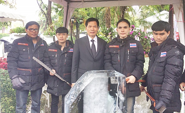 ด้านนักศึกษาอาชีวะทั้ง 3 ทีมสาธิตการแกะสลักน้ำแข็งให้สื่อมวลชนและประชาชนให้รับชมและกล่าวเป็นเสียงเดียวกันว่า รู้สึกภาคภูมิใจที่ได้สร้างชื่อเสียงให้กับประเทศ โดยผลงานที่ตั้งใจทำล้วนมีแนวคิดและได้แรงบันดาลใจสำคัญจากพระราชดำริของพระบาทสมเด็จพระปรมินทรมหาภูมิพลอดุลยเดช และตั้งใจจะพัฒนาและต่อยอดศักยภาพของตนเองต่อไป.-สำนักข่าวไทย