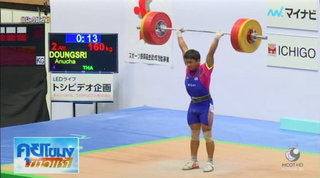 ส่วนน้ำหนักรวม เหรียญทอง ลินเดอร์ จากคาซัคสถาน 315 กิโลกรัม เหรียญเงินมิสซูโนริ คอนนาอิ จากญี่ปุ่น 313 กิโลกรัม และเหรียญทองแดง มาซาโนริ มิยาโมโตะ 312 คะแนน ส่วน อนุชา ดวงศรี ได้อันดับที่ 5 ขณะที่วิษณุ จันทรี ไม่ติดอันดับ. -สำนักข่าวไทย