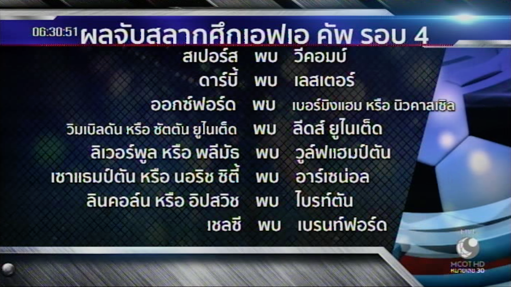 ผลจับสลากศึกเอฟเอ คัพ รอบ 4 คู่อื่นๆ