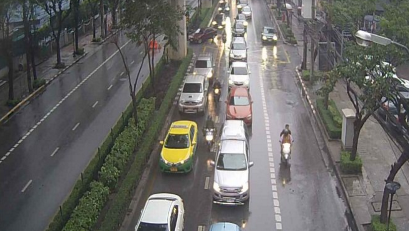 กรุงเทพฯ 10 ม.ค.-fm91trafficpro และ TRS995radio รายงานการจราจรเช้าวันอังคาร ถนนพหลโยธิน จากแยกสะพานควาย มุ่งหน้าอนุสาวรีย์ชัยสมรภูมิ รถมาก เคลื่อนตัวช้า พื้นผิวจราจรทั่วกรุงเทพฯ เปียกลื่นจากฝนที่ตกตลอดคืนที่ผ่านมา