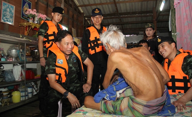 พล.ท.ปิยวัฒน์ กล่าวอีกว่า หนึ่งในปัญหาสำคัญที่พบขณะนี้ คือ มีผู้สูงอายุบางส่วนไม่ยอมย้ายออกจากบ้านพักที่มีน้ำท่วมสูง ซึ่งเจ้าหน้าที่ไม่สามารถบังคับได้ ต้องใช้ความสมัครใจ สิ่งที่ทำได้ คือ ให้ทหาร ทีมแพทย์หมุนเวียนเข้าไปดูแล เพราะไม่สามารถจัดเจ้าหน้าที่เฝ้าได้ตลอด 24 ชั่วโมง เนื่องจากกำลังไม่พอเพียง