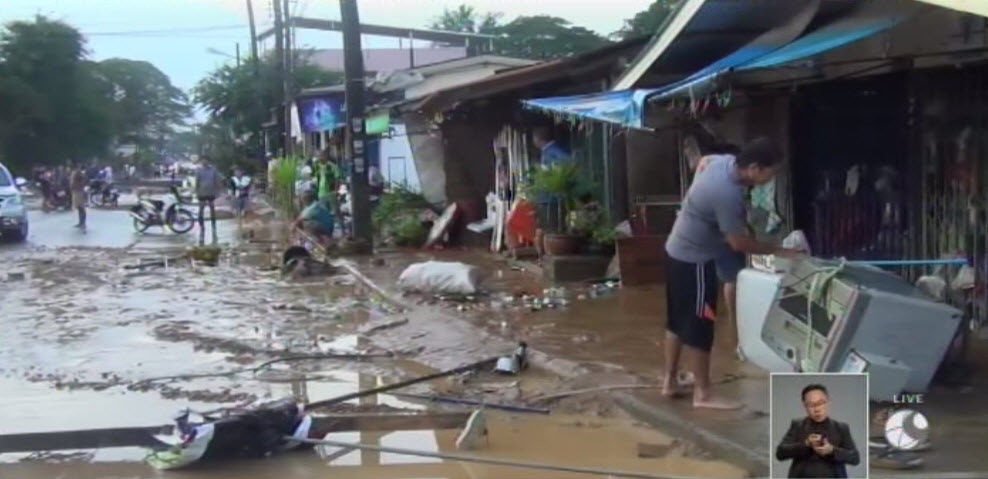 ระดับน้ำในพื้นที่ชุมชนเมืองเก่าพัฒนา ต.กระบี่ใหญ่ อ.เมือง จ.กระบี่ เข้าสู่ภาวะปกติแล้ว หลังจากเมื่อคืนที่ผ่านมา น้ำป่าจากเทือกเขาพนมเบญจาหลากเข้าท่วมในเขต อ.เมือง ขณะนี้เจ้าหน้าที่กำลังเร่งสำรวจความเสียหาย ชาวชุมชนเมืองเก่าพัฒนาเร่งทำความสะอาดบ้านเรือน เนื่องจากมีดินโคลนเป็นจำนวนมาก สถานที่ราชการและธนาคารถูกน้ำท่วมสูงกว่า 2 เมตร ส่วน ต.ทับปริก น้ำป่าพัดสะพานขาด 1 แห่ง ขณะที่ อ.เขาพนม ถูกน้ำท่วมสูงกว่า 2 เมตร ถนนถูกตัดขาดหลายสาย ล่าสุดทางการเฝ้าติดตามสถานการณ์น้ำอย่างใกล้ชิด เนื่องจากยังมีฝนตกลงมาตลอด ส่วนดาบตำรวจที่ถูกน้ำป่าพัด ขณะนี้กลับไปพักรักษาตัวที่บ้านแล้ว